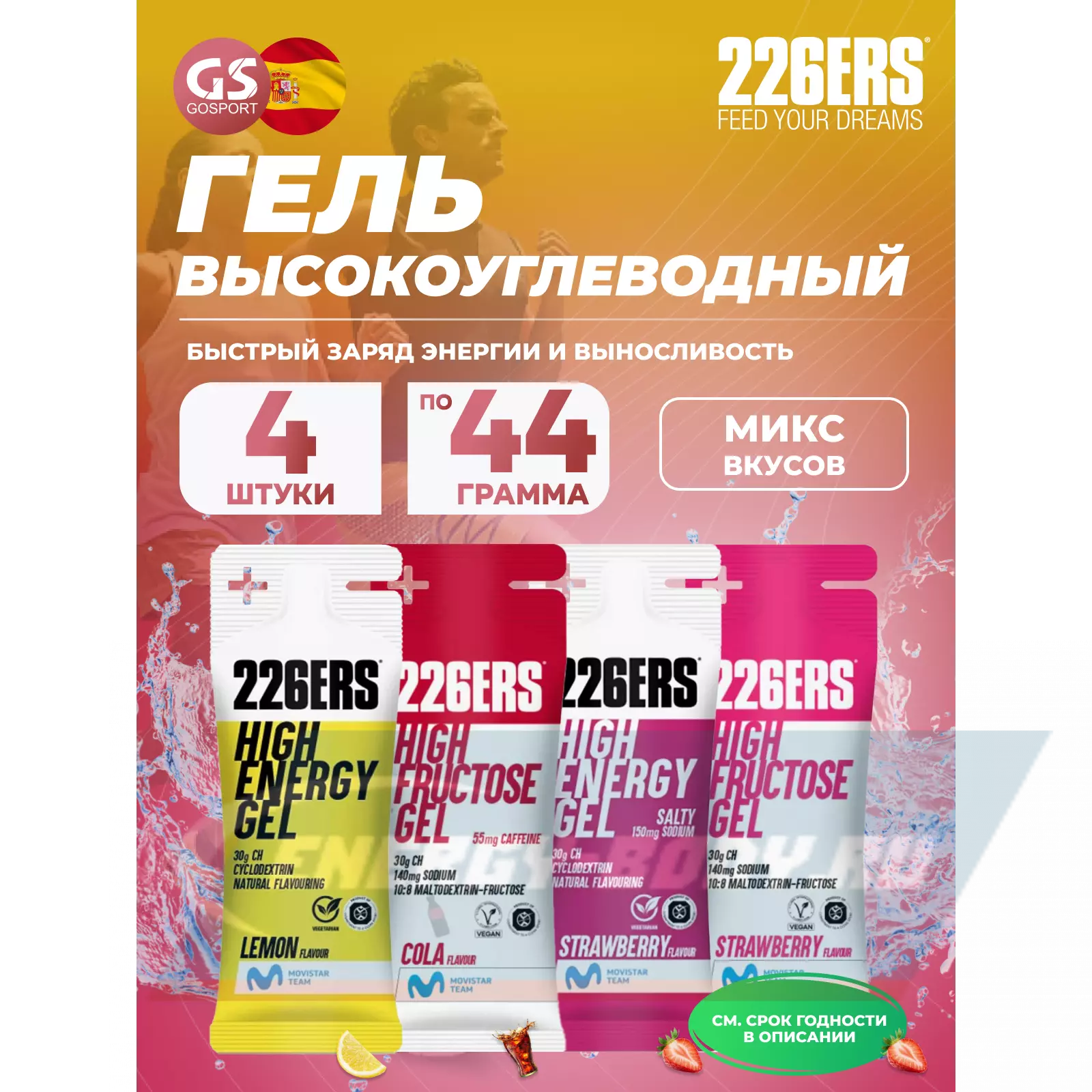 226ERS High Energy Gel + sodium 150 mg 4 x 44 г, Микс 12 — Быстрый заряд энергии и выносливость