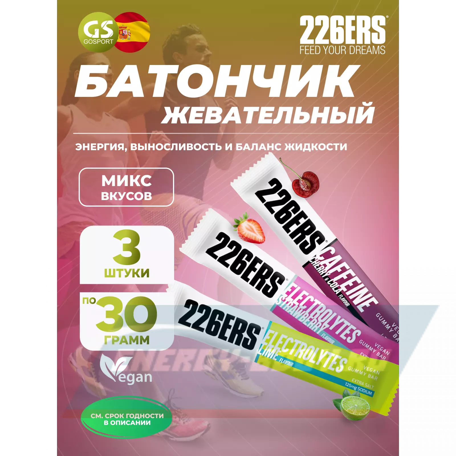 226ERS Gummy bar + sodium 125 mg 3 x 30 г, Микс 4 — Энергия и выносливость