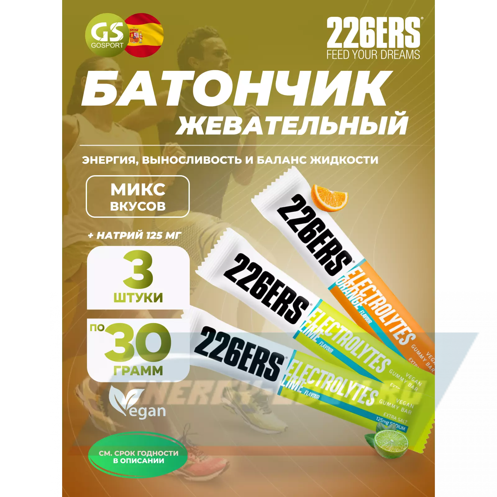 226ERS Gummy bar + sodium 125 mg 3 x 30 г, Микс 7 — Энергия и выносливость