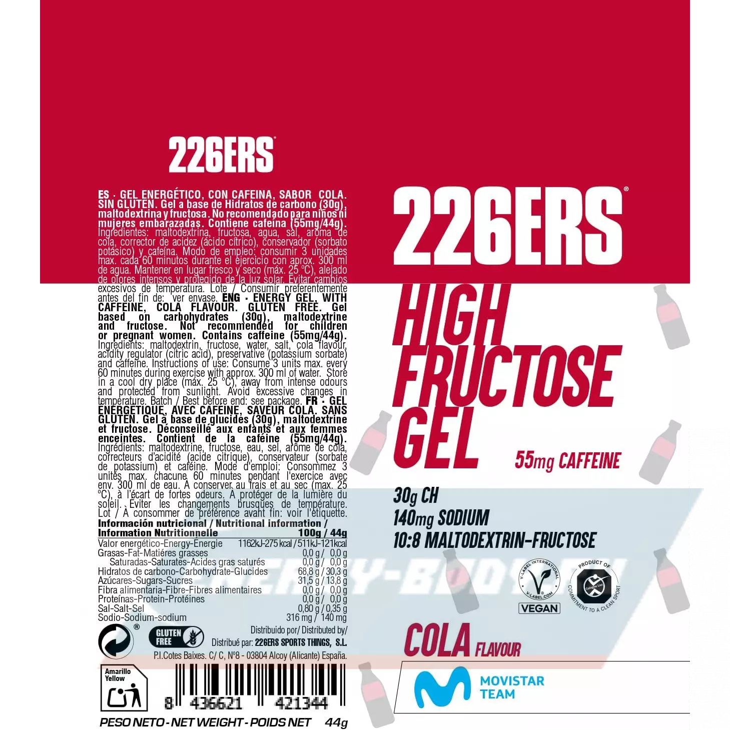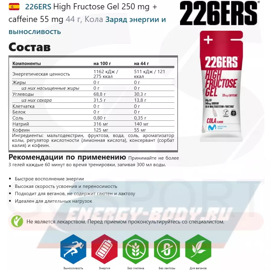 Состав 226ERS High Fructose Gel 250 mg + caffeine 55 mg