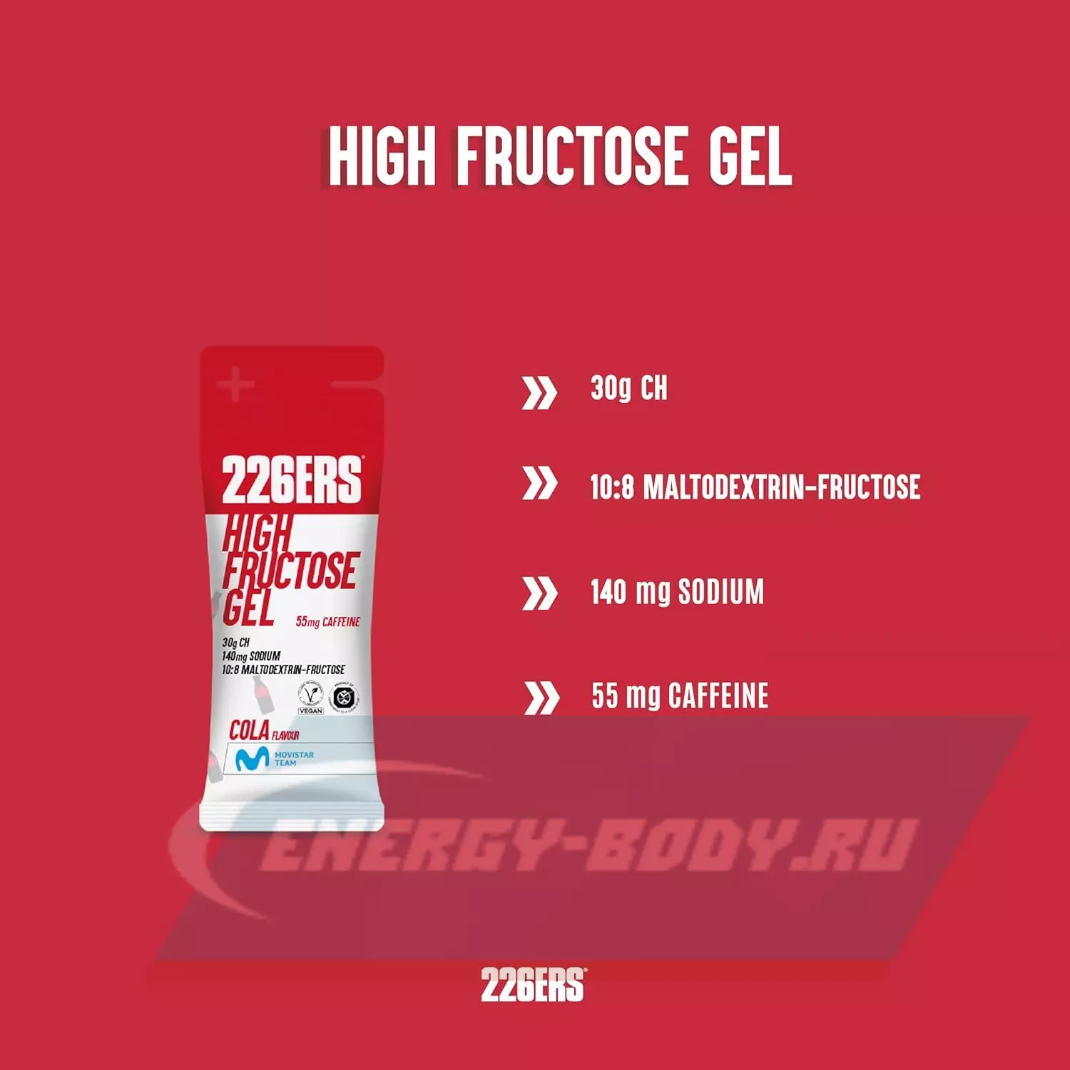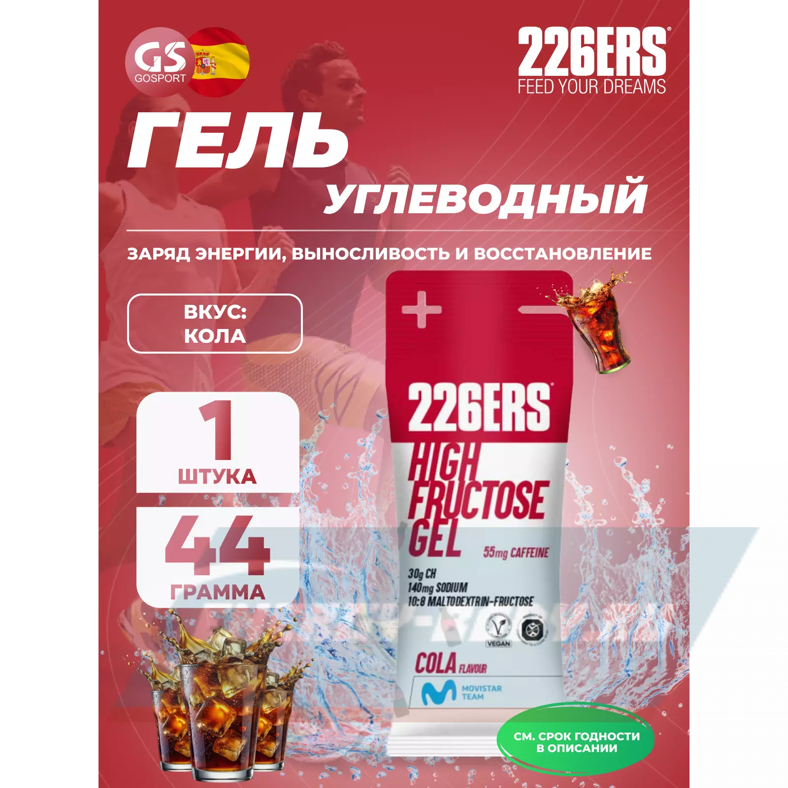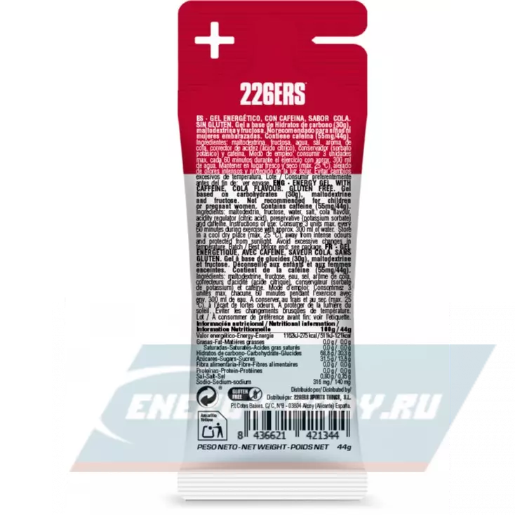 226ERS High Fructose Gel 250 mg + caffeine 55 mg 44 г, Кола — Заряд энергии и выносливость