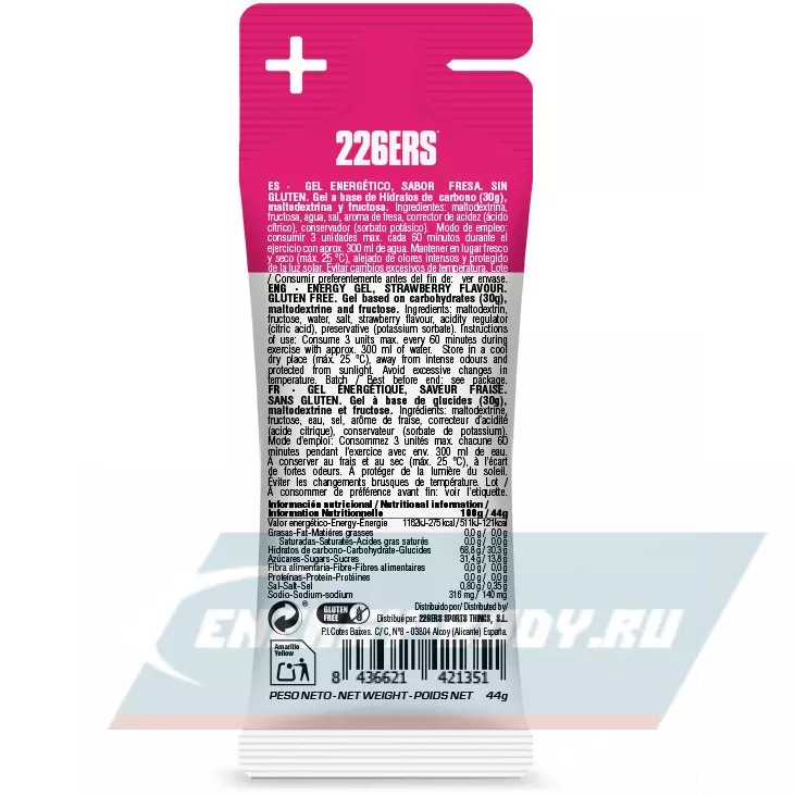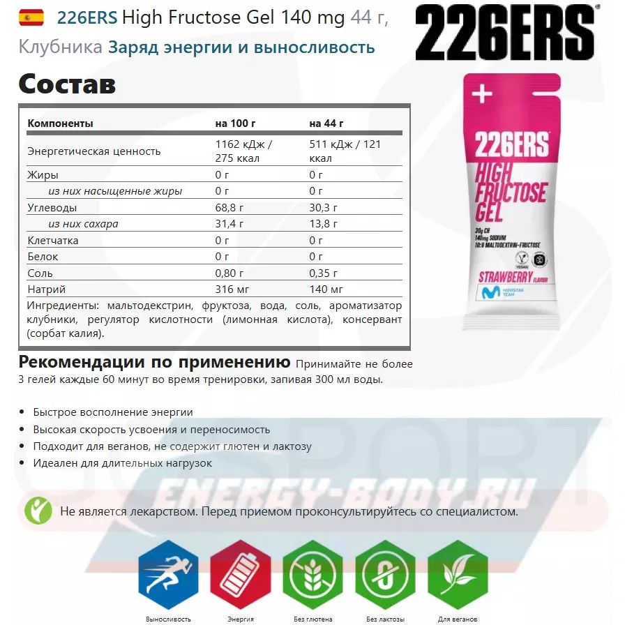 226ERS High Fructose Gel 140 mg 44 г, Клубника — Заряд энергии и выносливость