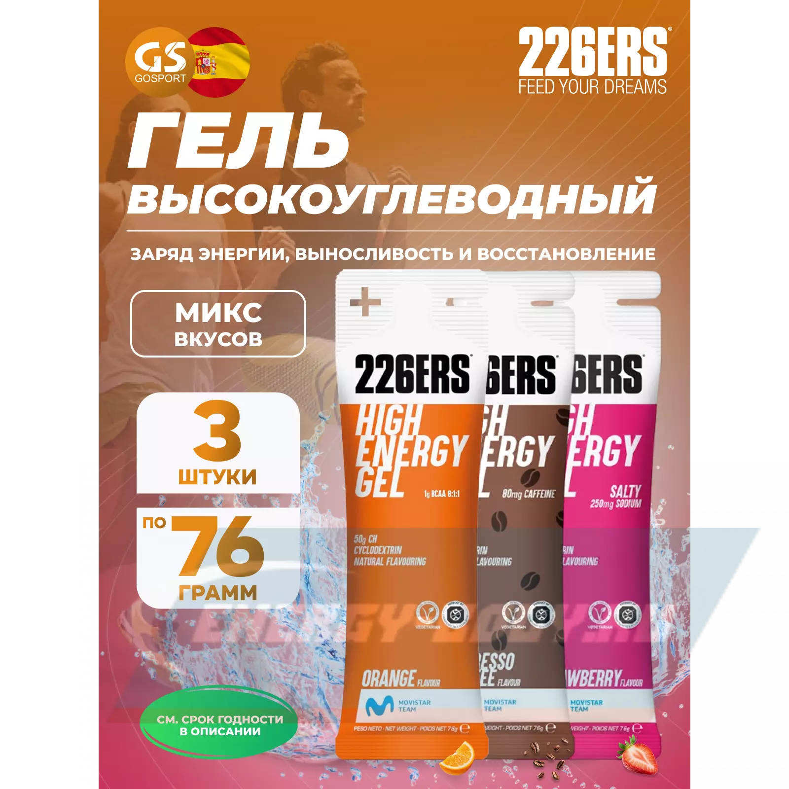 226ERS High Energy Gel + sodium 250 mg 3 x 76 г, Микс №10 — Заряд энергии, выносливость и восстановление