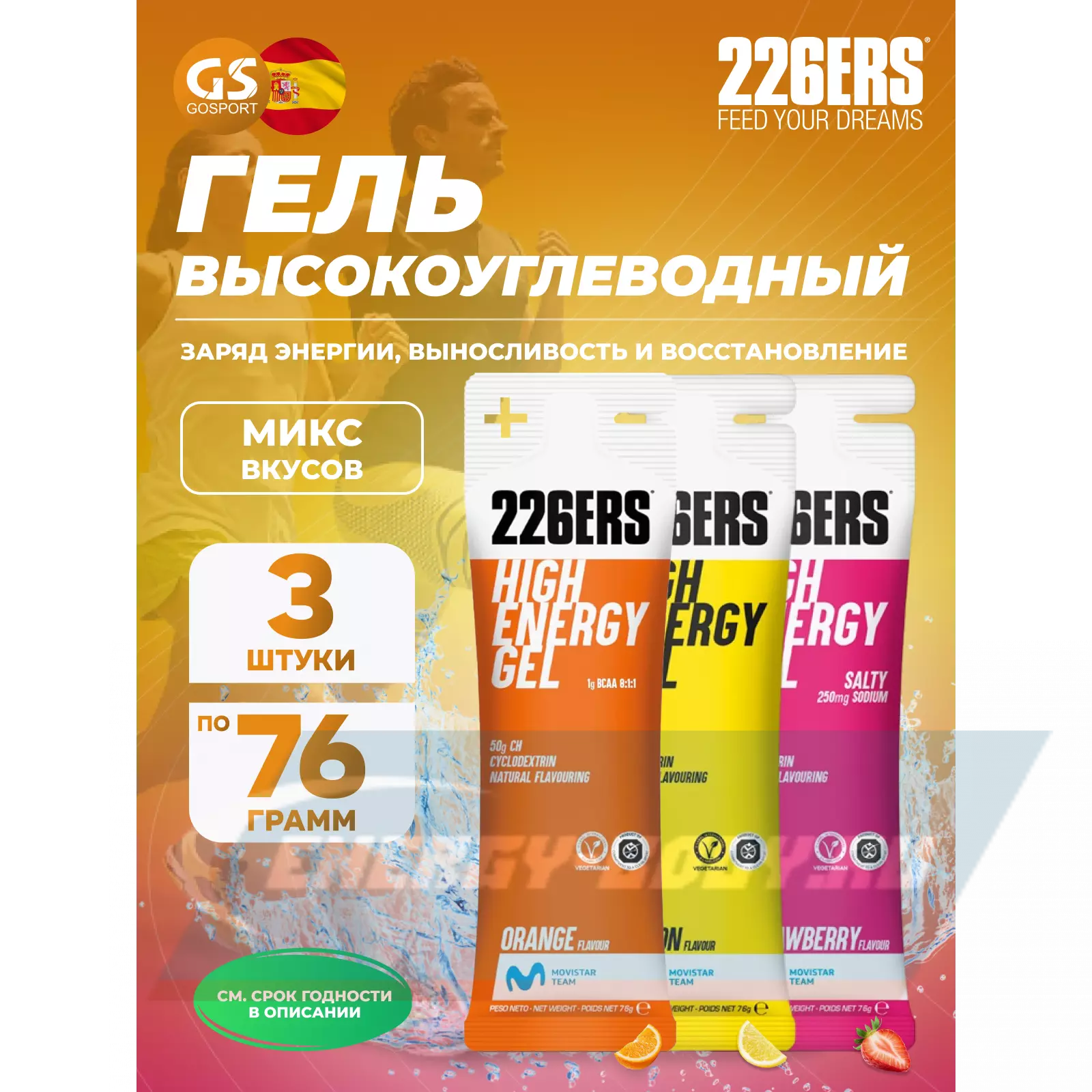 226ERS High Energy Gel 3 x 76 г, Микс №12 — Заряд энергии, выносливость и восстановление