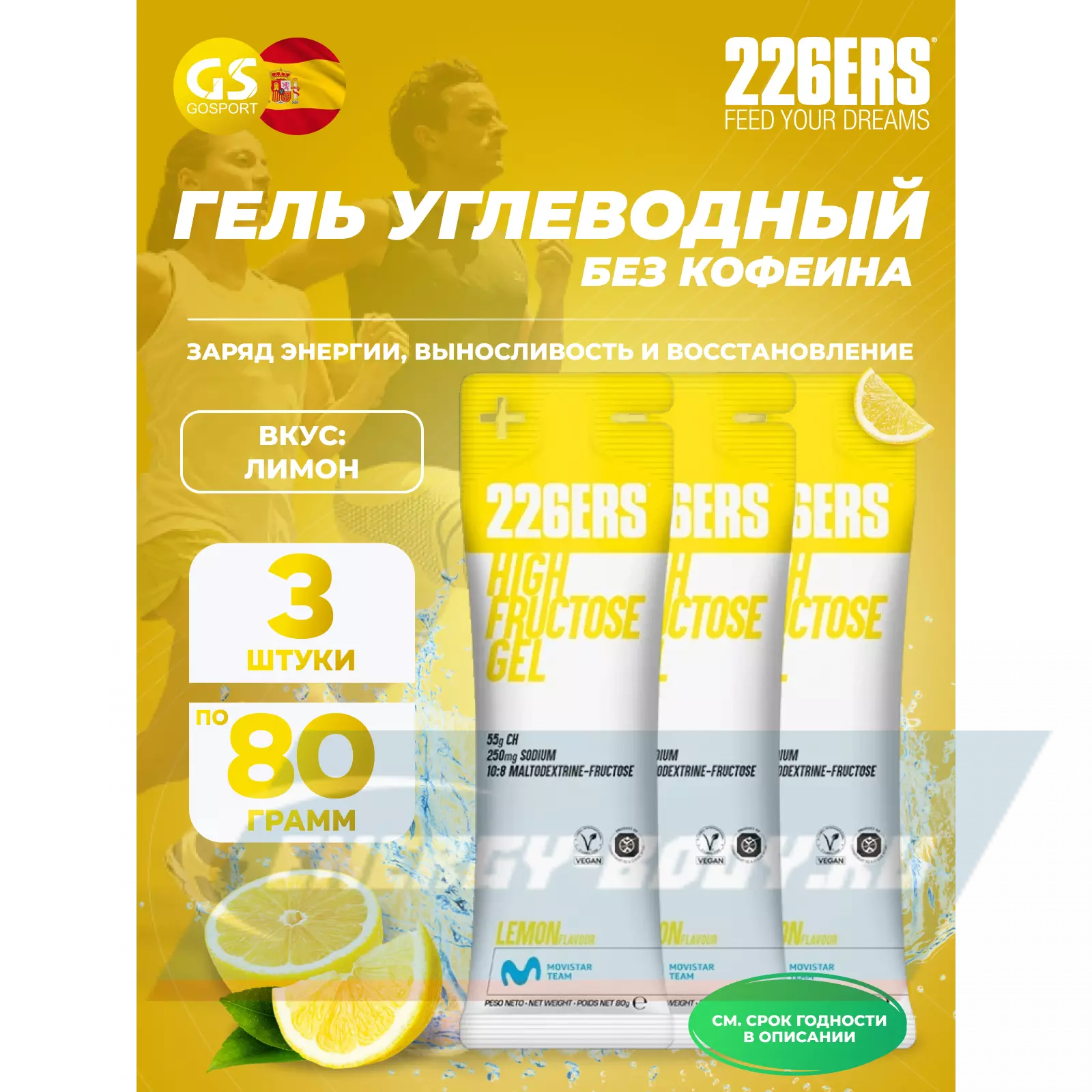 226ERS High Fructose Gel 250 mg 3 x 80 г, Лимон — Заряд энергии и выносливость
