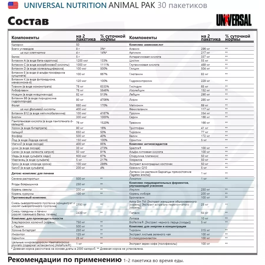 Состав UNIVERSAL NUTRITION ANIMAL PAK