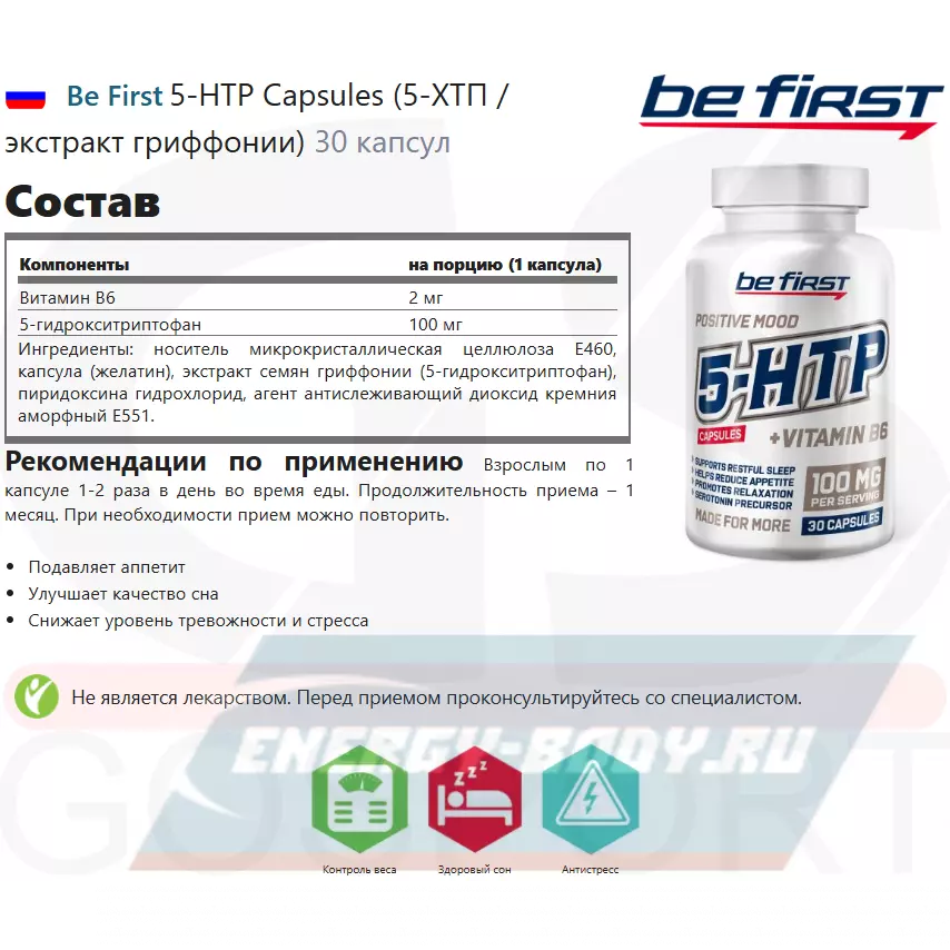 Состав Be First 5-HTP Capsules (5-ХТП / экстракт гриффонии)