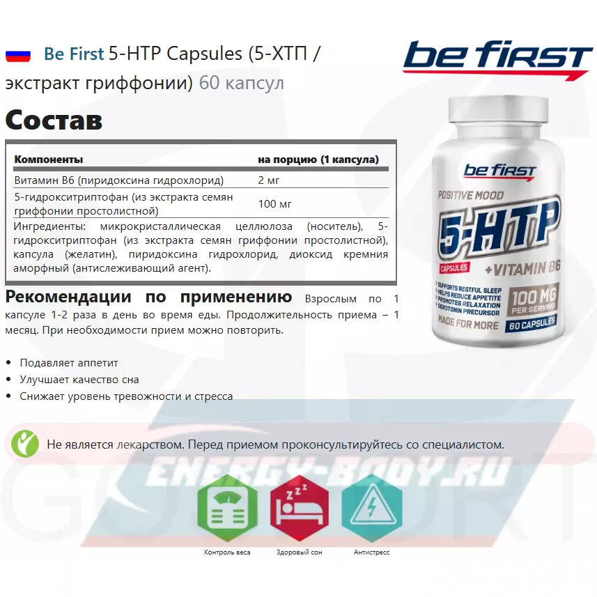 Состав Be First 5-HTP Capsules (5-ХТП / экстракт гриффонии)
