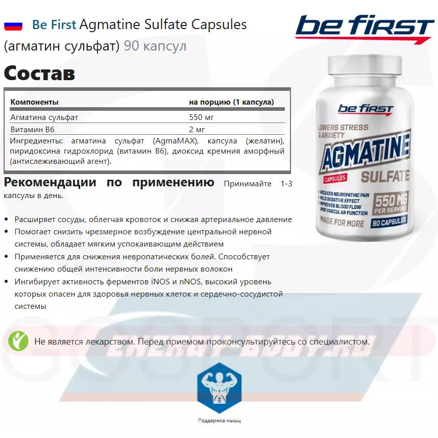 - Полное описание Agmatine Sulfate Capsules (агматин сульфат)