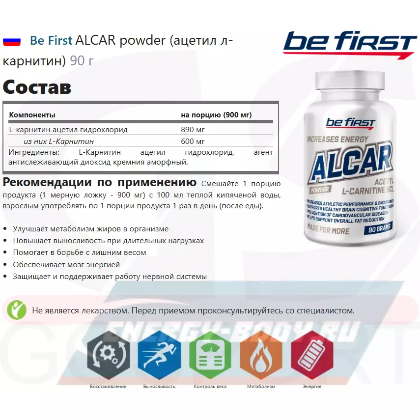 Состав Be First ALCAR powder (ацетил л-карнитин)