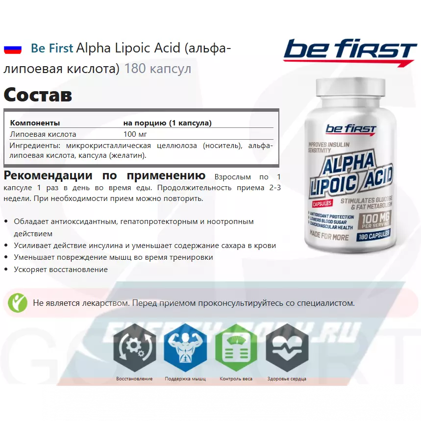 Состав Be First Alpha Lipoic Acid (альфа-липоевая кислота)