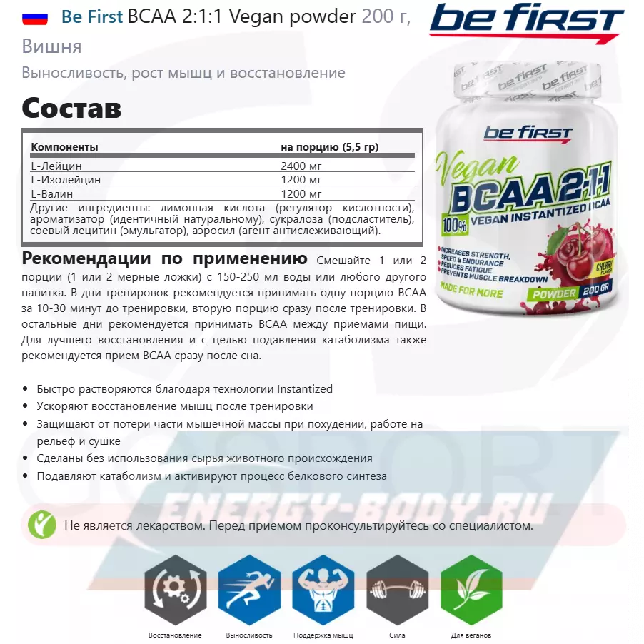 - Полное описание BCAA 2:1:1 Vegan powder