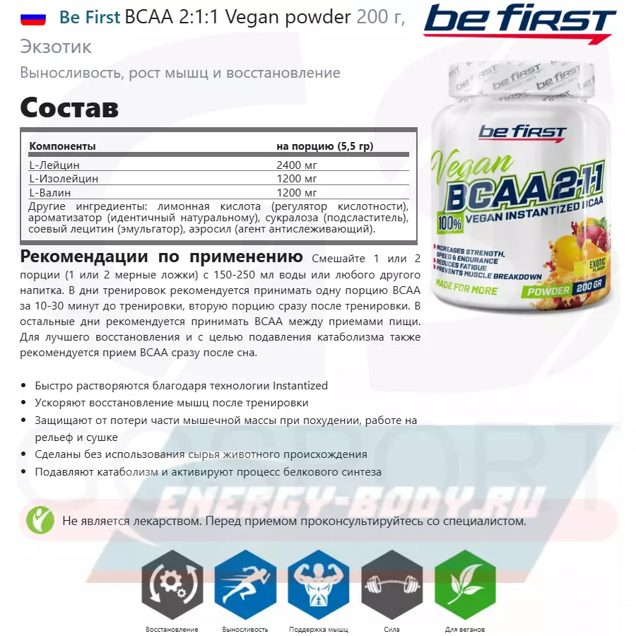 BCAA 2:1:1 Vegan powder 200 г, Экзотик