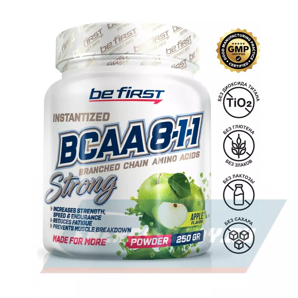 Be First instantized BCAA 8:1:1 Powder - это комплекс незаменимых аминокислот, в который входит 3 аминокислоты с разветвленной углеродной цепью, которые исключительно важны для синтеза белка и роста мышц: L-лейцин, L-изолейцин, L-валин. Соотношение количества этих аминокислот в составе добавки – 8:1:1.
