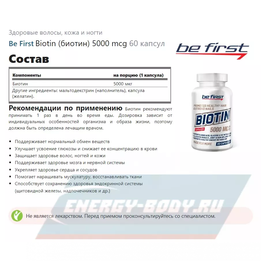 Добавка с биотином нацелена на поддержание здоровья всех, кто ощущает нехватку этого важнейшего нутриента: