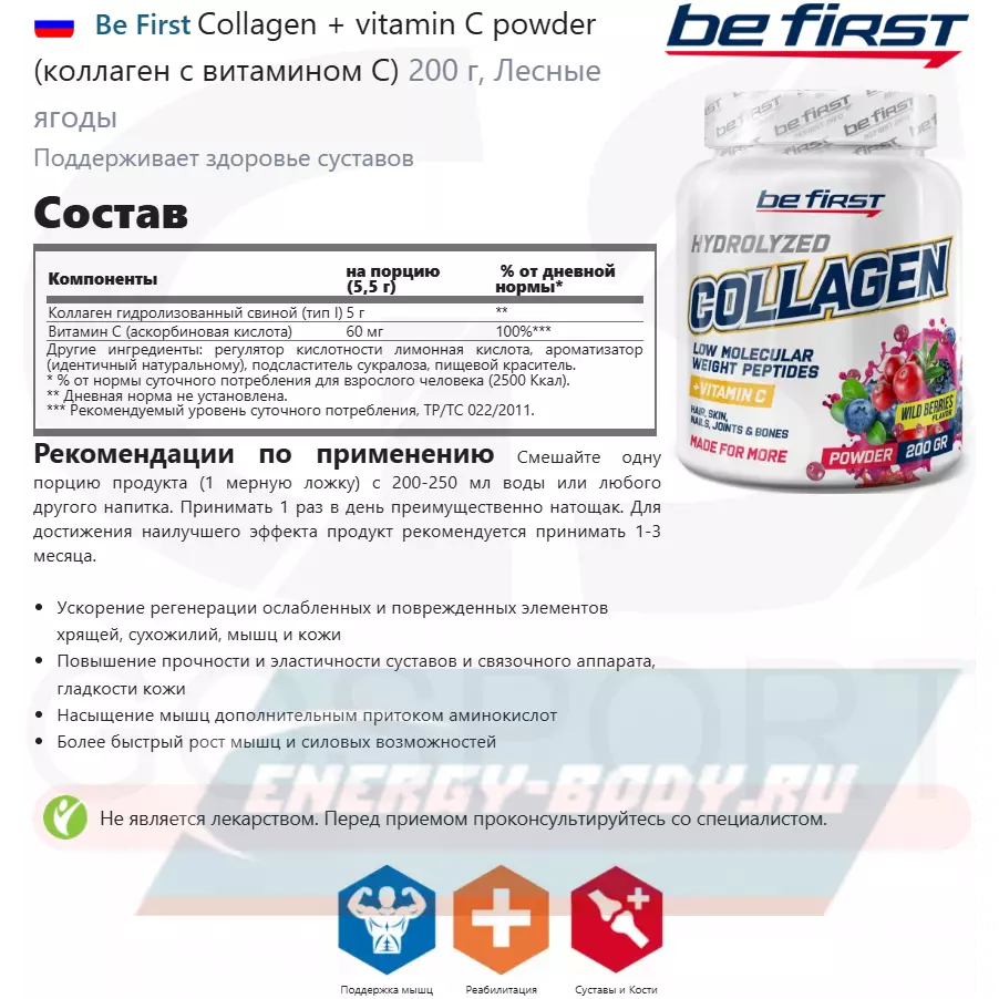Состав Be First Collagen + vitamin C powder (коллаген с витамином С)