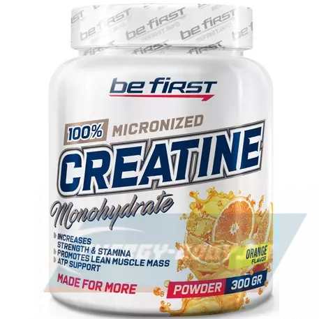 Be First Creatine Micronized Powder (креатин моногидрат) 300 г, Апельсин — Выносливость, сила и восстановление