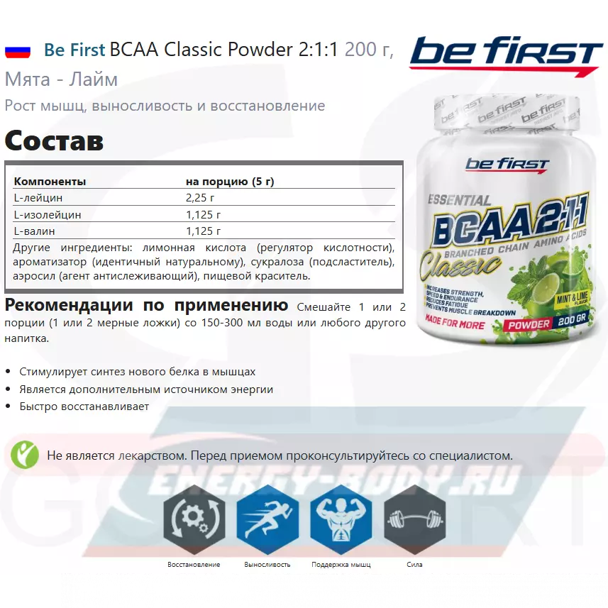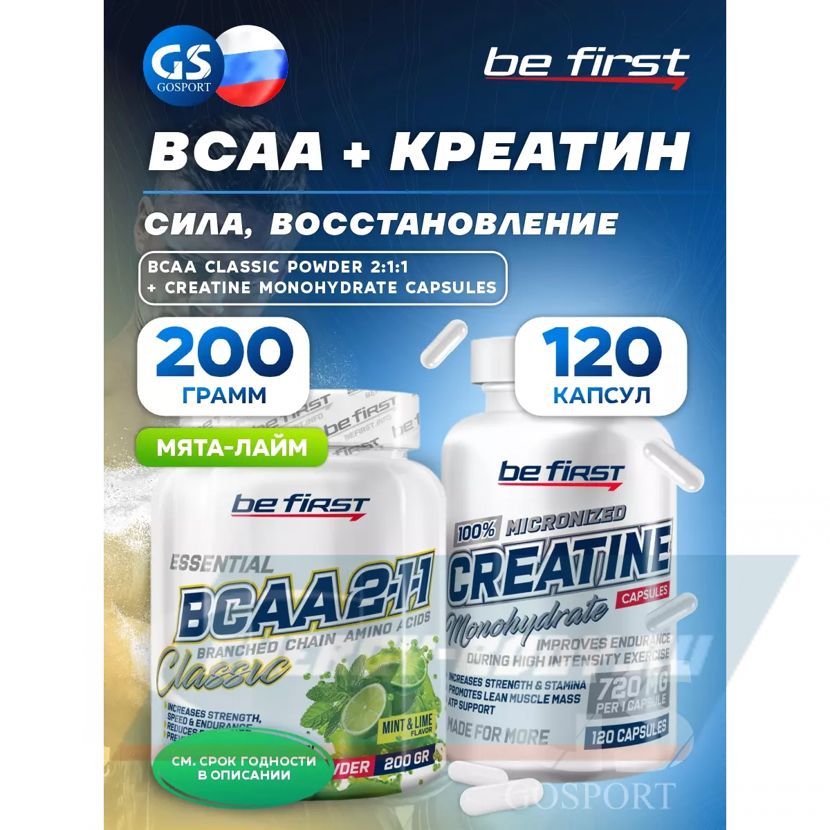 Be First Creatine Monohydrate Capsules + BCAA 2:1:1 Classic Powder 120 капсул + 200 г — Выносливость, сила и восстановление