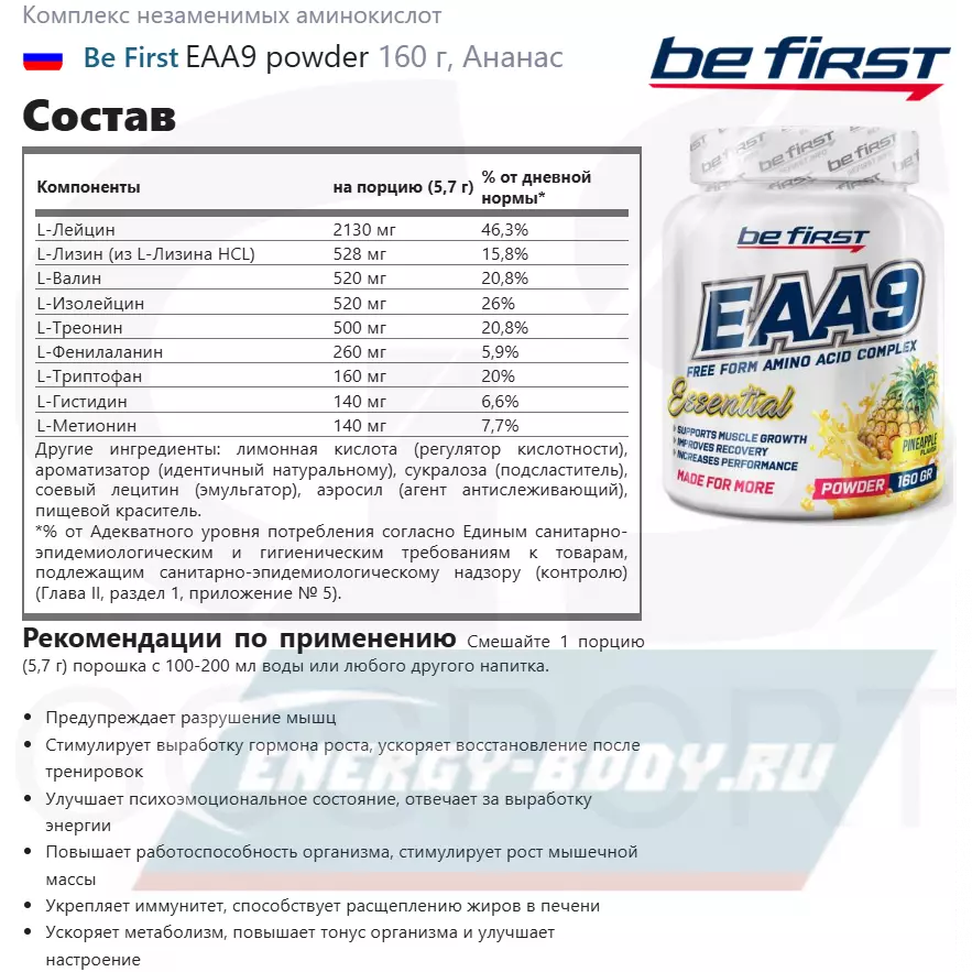 Состав Be First EAA9 powder