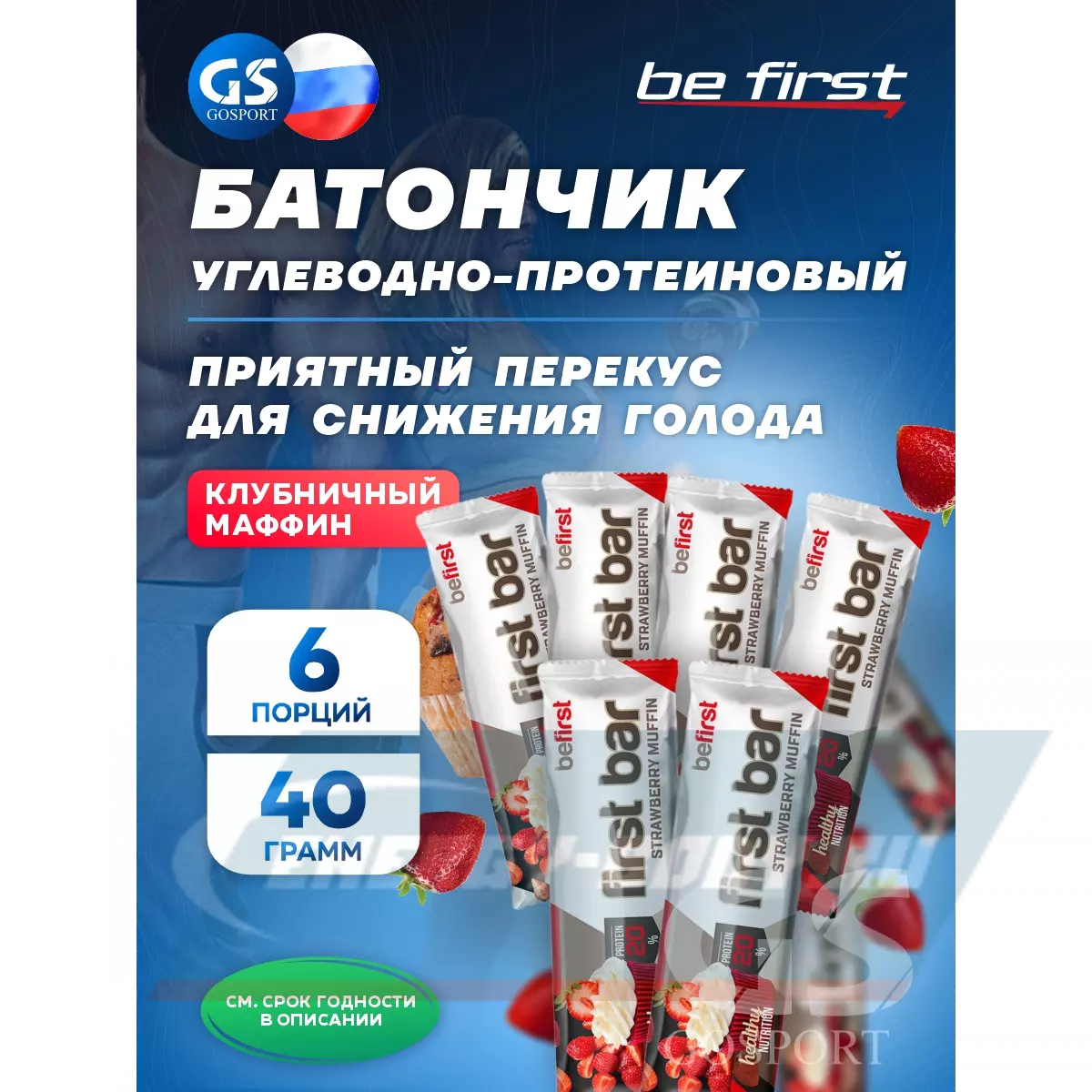 Be First First bar углеводно-протеиновый батончик 6 x 40 г, Клубника — Приятный перекус для снижения голода