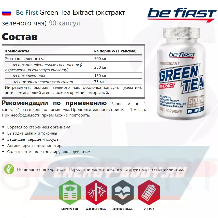 Состав Be First Green Tea Extract (экстракт зеленого чая)