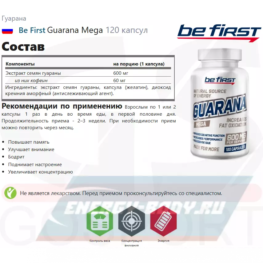 Таким образом, Be First Guarana Extract Capsules: