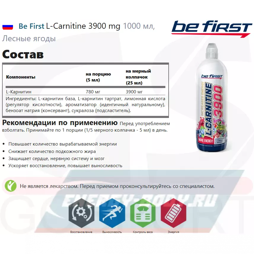 Итак, прием Be First L-carnitine 3900 способствует: