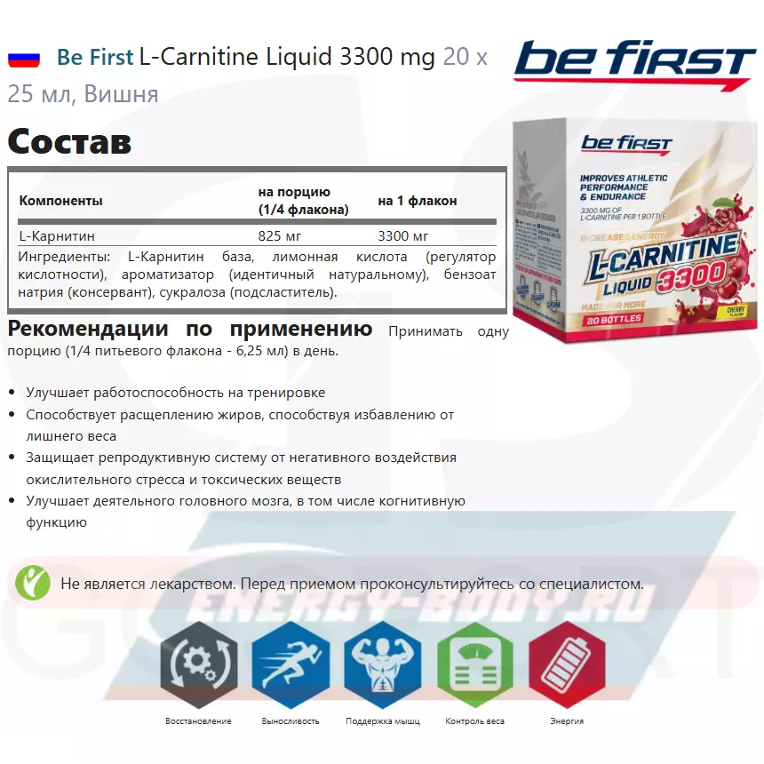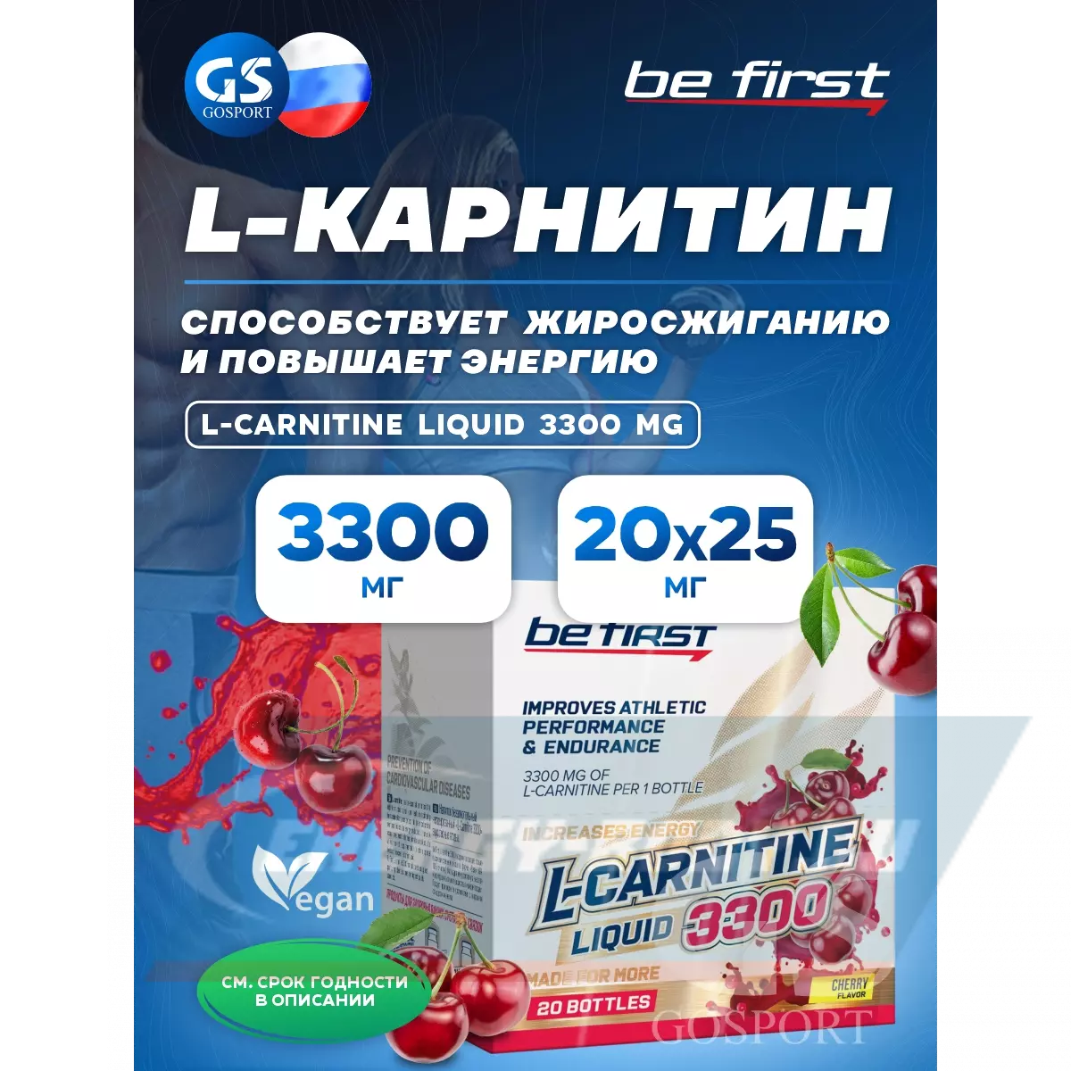Be First L-Carnitine Liquid 3300 mg 20 х 25 мл, Вишня — для жиросжигания и выносливости