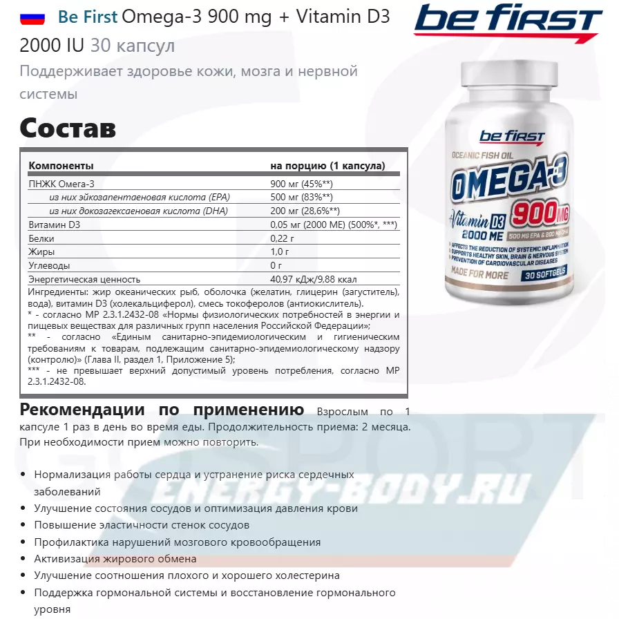 Состав Be First Omega-3 900 mg + Vitamin D3 2000 IU
