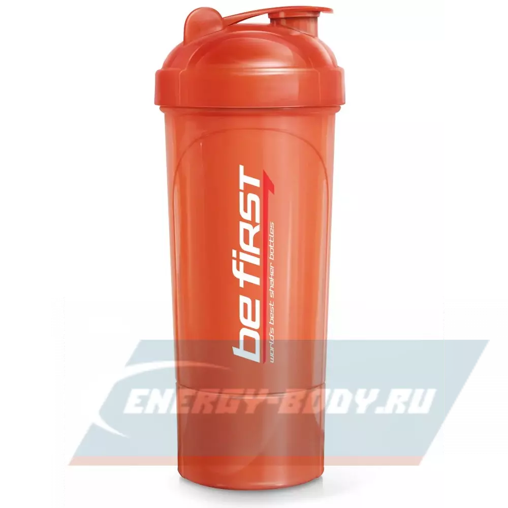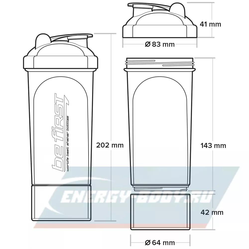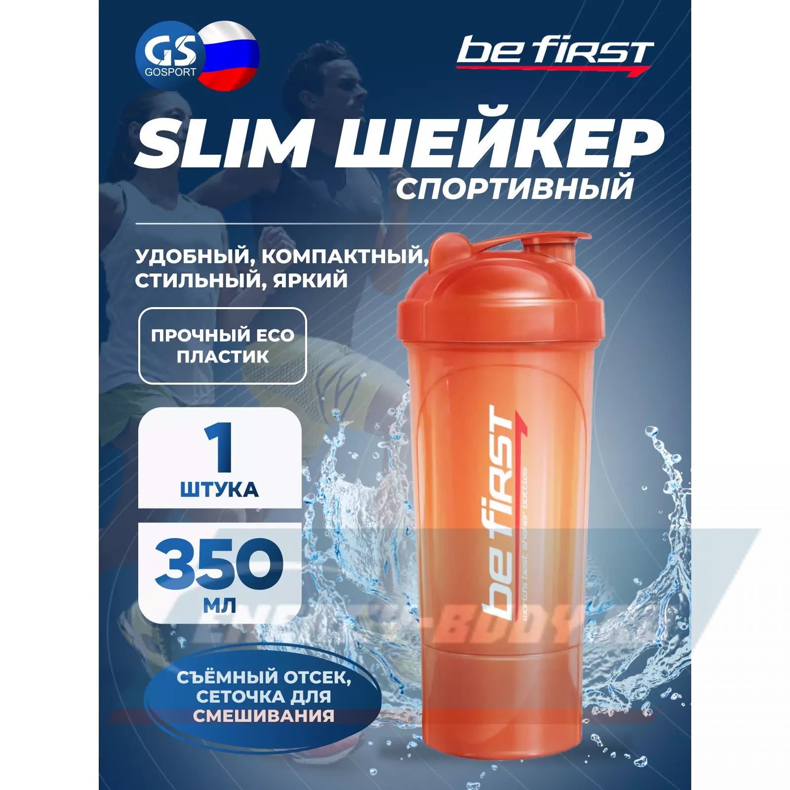 Очень изящный спортивный шейкер Be First удобного компактного размера объемом 350 мл. Корпус тонкий (или, точнее узкий) — даже самой хрупкой даме будет удобно держать его в руке. Полупрозрачный — уровень жидкости будет видно (и для этого есть мерная шкала), а вот что там намешано — останется Вашим секретом. Пластиковых шейкер выпускается в вариантах насыщенных ярких расцветок. Крышка округлая, на резьбе, с удобным небольшим носиком овальной формы. Носик закрывается жесткой защелкивающейся крышечкой, закрепленной на крышке шейкера, так что она не потеряется. Несмотря на то, что носик не имеет резьбы, закрывается он очень плотно — ничего не прольется.