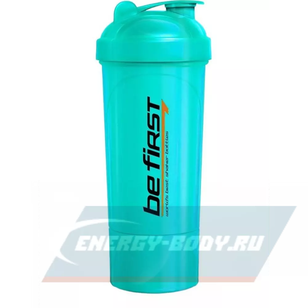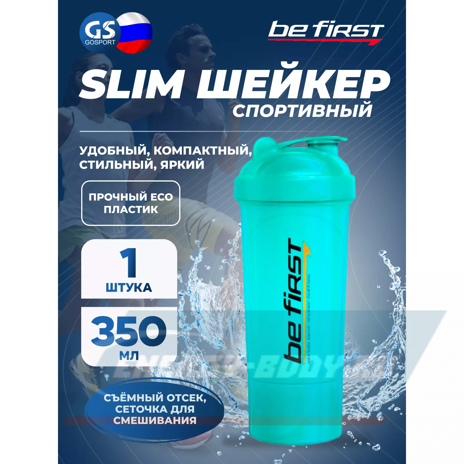 Очень изящный спортивный шейкер Be First удобного компактного размера объемом 350 мл. Корпус тонкий (или, точнее узкий) — даже самой хрупкой даме будет удобно держать его в руке. Полупрозрачный — уровень жидкости будет видно (и для этого есть мерная шкала), а вот что там намешано — останется Вашим секретом. Пластиковых шейкер выпускается в вариантах насыщенных ярких расцветок. Крышка округлая, на резьбе, с удобным небольшим носиком овальной формы. Носик закрывается жесткой защелкивающейся крышечкой, закрепленной на крышке шейкера, так что она не потеряется. Несмотря на то, что носик не имеет резьбы, закрывается он очень плотно — ничего не прольется.