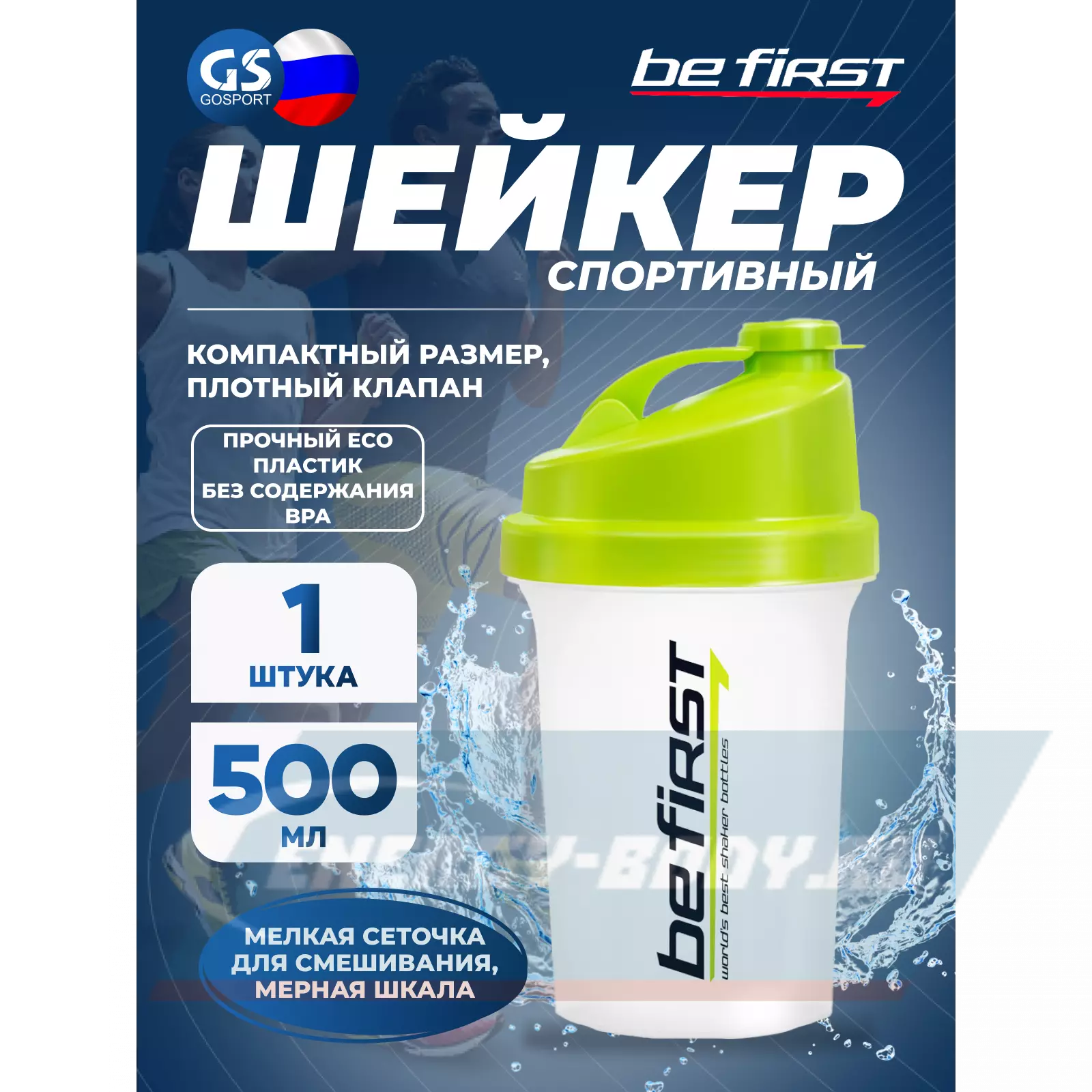 Компактный спортивный шейкер на 500 мл от Be First из пищевого ECO пластика, в котором можно смешать протеин, гейнер, аминокислоты, изотоник, креатин или что-то еще. Корпус полупрозрачный, бесцветный, с двух сторон имеет плоские прозрачные полоски, на которые нанесена мерная шкала в мл и унциях. Крышка закручивающаяся, имеет овальный носик для питья, закрываемый жестко закрепленным на крышке клапаном. Внутри — мелкая сетка в квадратных ячейках. Со стороны корпуса ее фиксируют 4 небольших выступа, для фиксации сеточки для смешивания.
