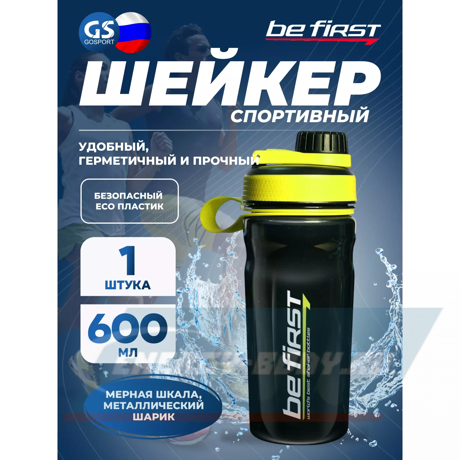Великолепный стильный спортивный шейкер 600 мл от Be First с металлическим шариком! Полупрозрачный черный корпус с пологой канавкой в верхней части для удобства удерживания, яркие цветные элементы, улучшенный функционал – все это делает данный шейкер фаворитом.