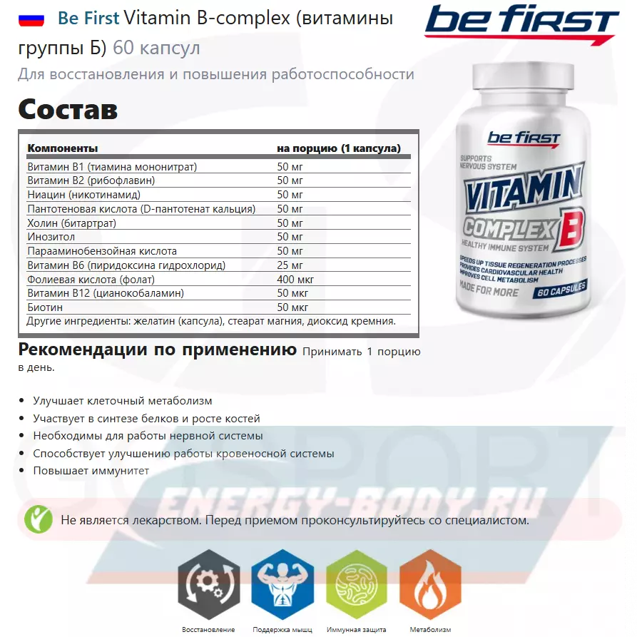 Be First Vitamin B-complex (витамины группы Б) 60 капсул — Для восстановления и повышения работоспособности