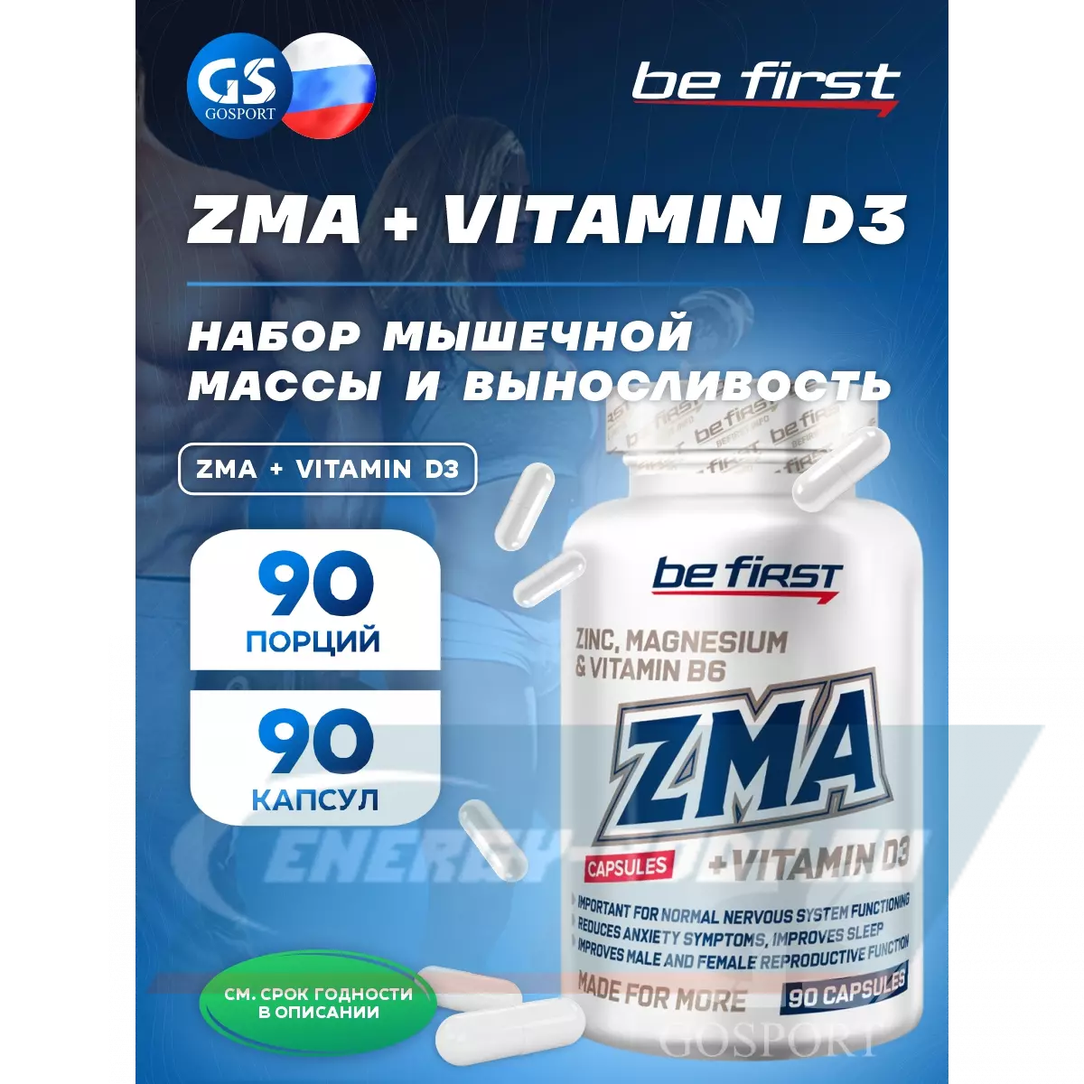 ZMA от Be First содержит важнейшие компоненты: соединения цинка и магния, витамины В6, В5 и D3, исключительно важные для секреции собственного тестостерона, поддержки сердца и нервной системы, сохранения прочности костей, ускорения восстановления и роста мышц.