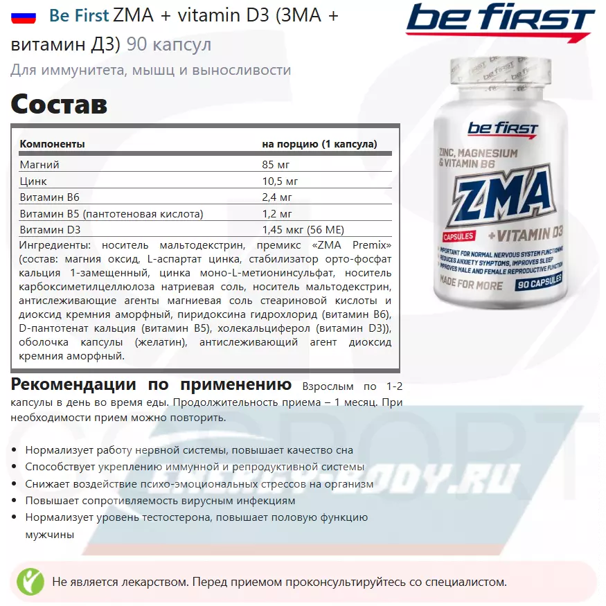 - Полное описание ZMA + vitamin D3 (ЗМА + витамин Д3)