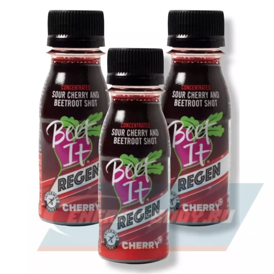 • Шоты Beet It Regen Cherry+ содержат концентрат вишневого сока (58%) и концентрат свекольного сока (42%) в удобном готовом к употреблению формате объемом 70 мл.