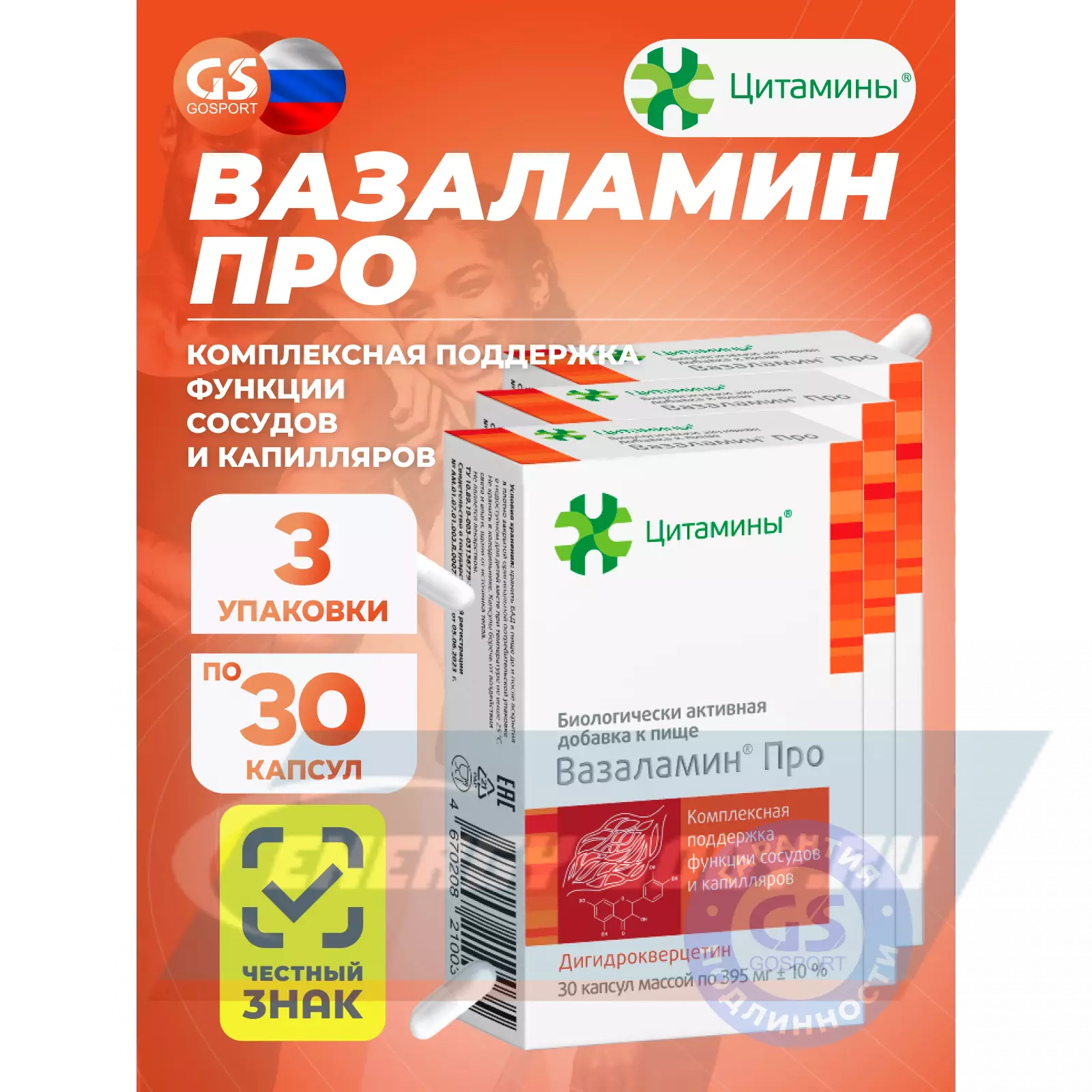 Цитамины Вазаламин Про 3 x 30 капсул — Комплексная поддержка функции сосудов и капилляров