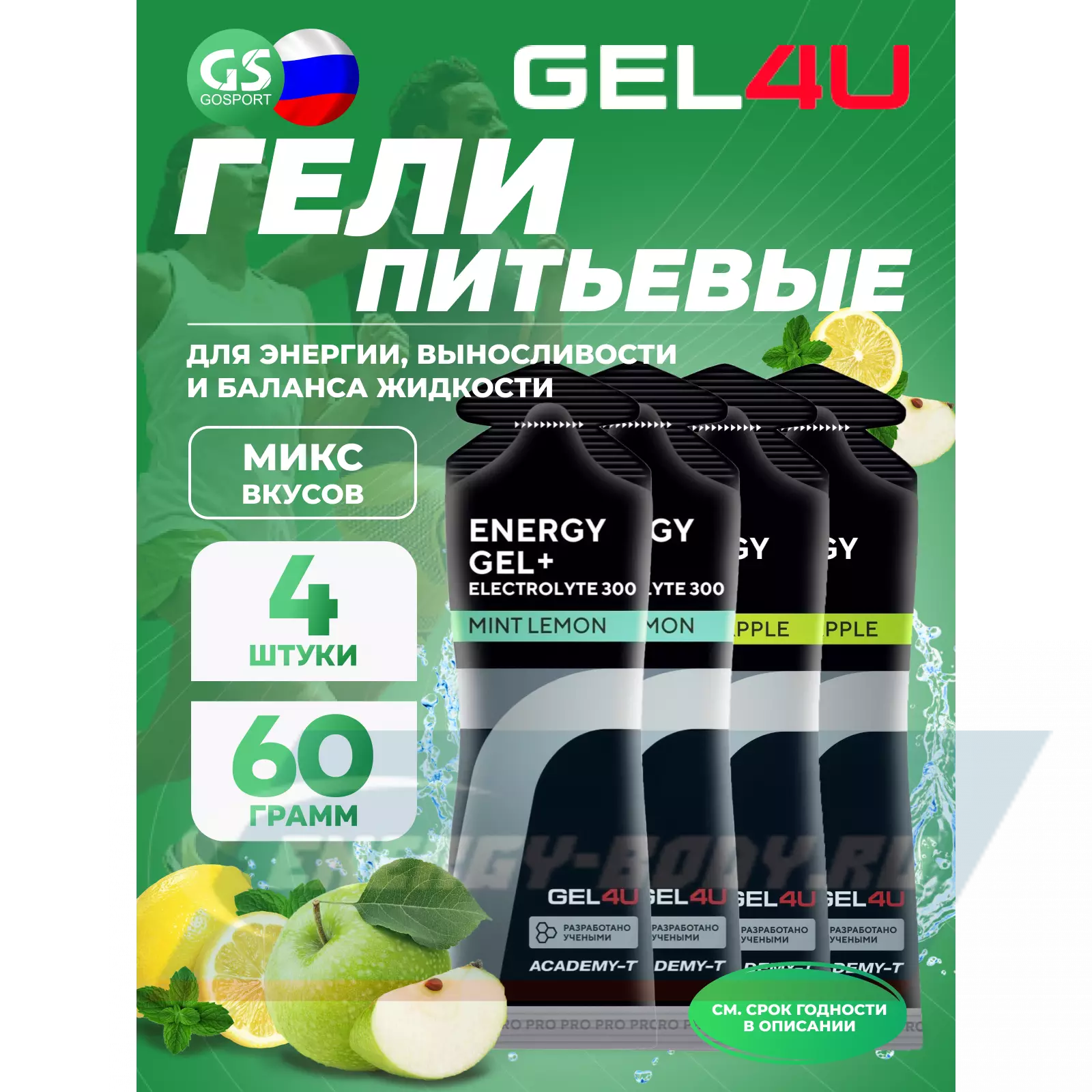 Energy Gel MIX 4 x 60 г, Яблоко, Лимон и Мята