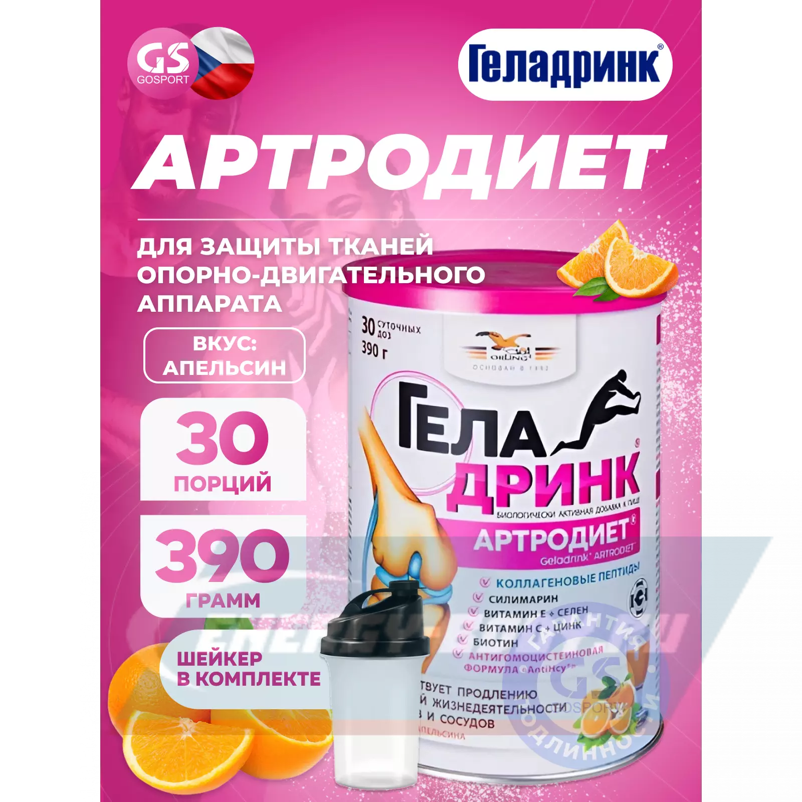ГЕЛАДРИНК Артродиет (Geladrink Artrodiet) + Шейкер 390 г + шейкер, Апельсин — Для суставов и опорно-двигательного аппарата