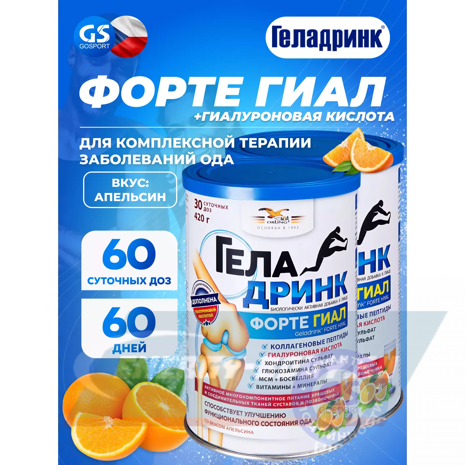 ГЕЛАДРИНК ФОРТЕ (Geladrink Forte) ГИАЛ 2 х 420 г, Апельсин — Для подвижности и гибкости суставов