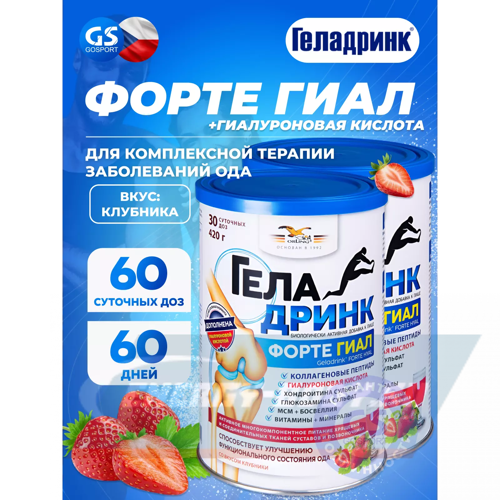 ГЕЛАДРИНК ФОРТЕ (Geladrink Forte) ГИАЛ 2 х 420 г, Клубника — Для подвижности и гибкости суставов