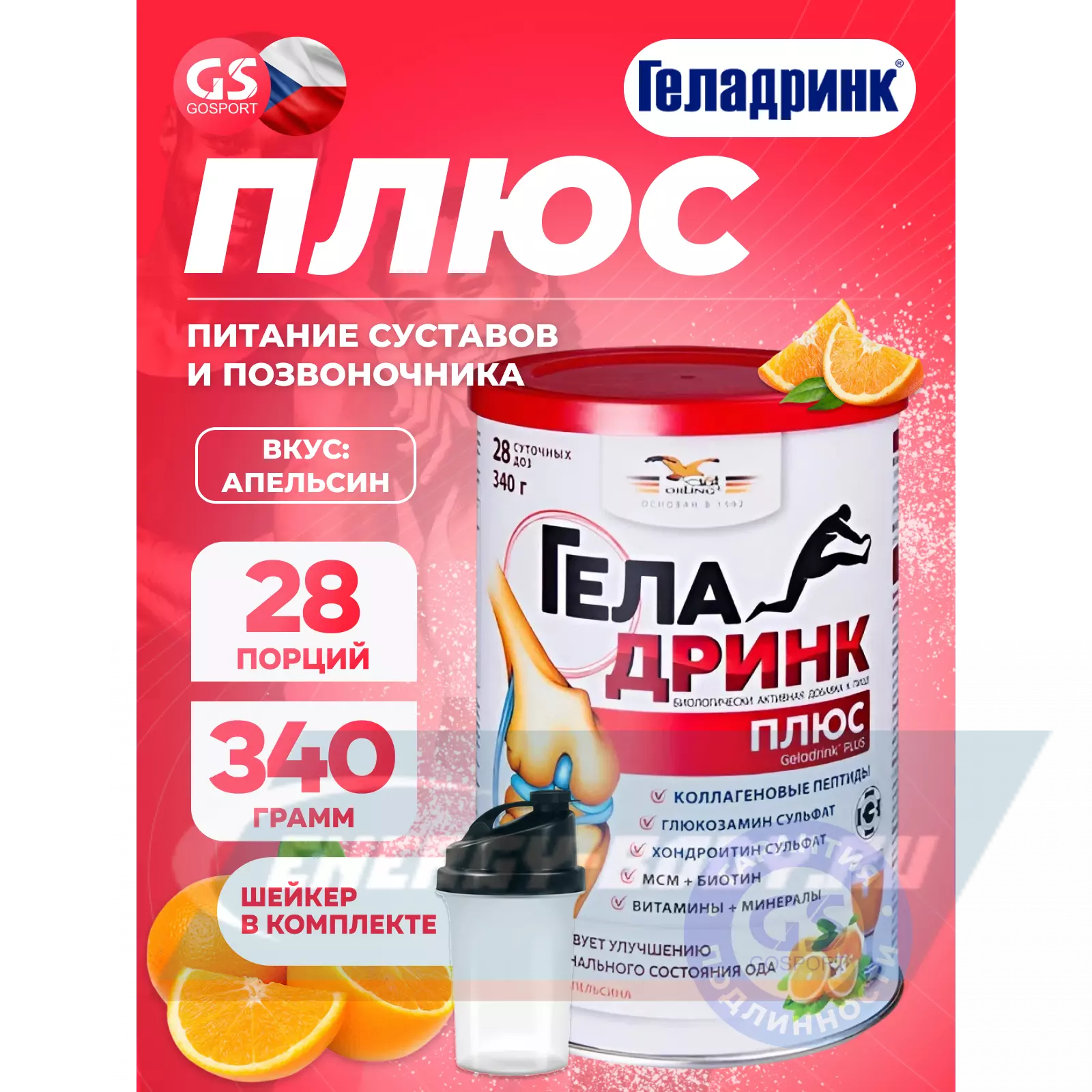 ГЕЛАДРИНК Плюс (Geladrink Plus) + Шейкер 340 г + шейкер, Апельсин — Для опорно-двигательного аппарата