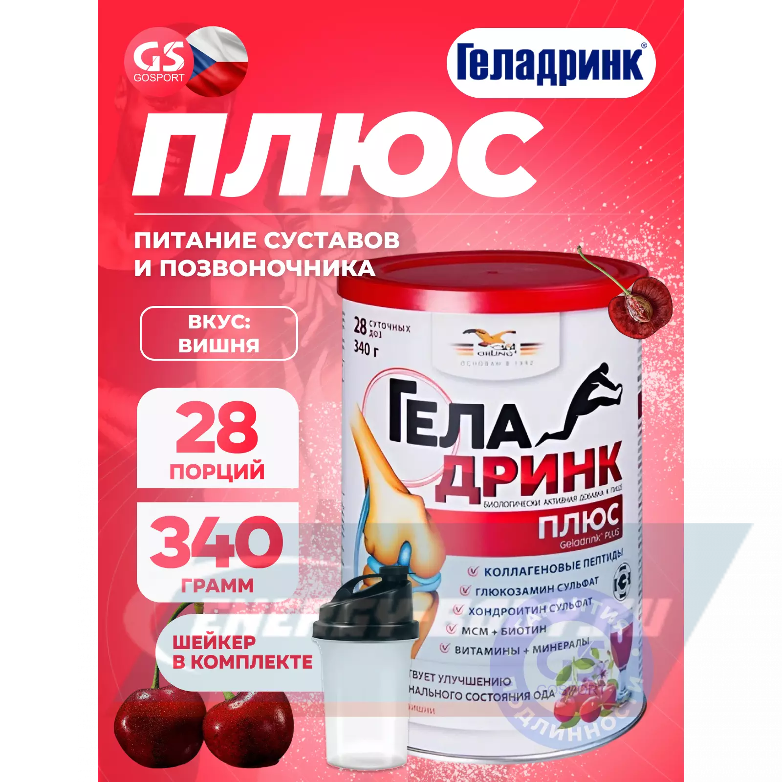 ГЕЛАДРИНК Плюс (Geladrink Plus) + Шейкер 340 г + шейкер, Вишня — Для опорно-двигательного аппарата