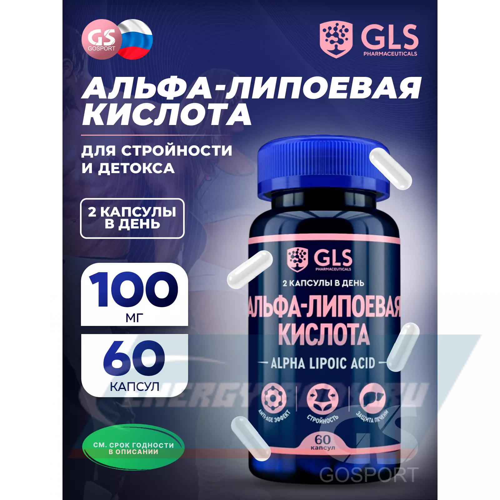 GLS pharmaceuticals Альфа-Липоевая кислота (Alpha Lipoic acid) 100 мг 60 капсул — для похудения, энергии и печени
