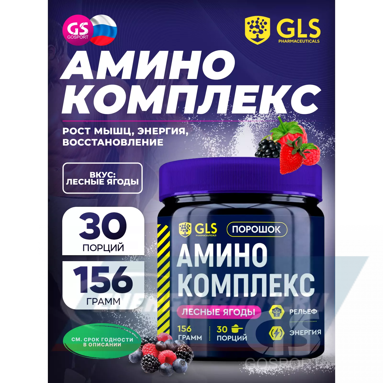 GLS pharmaceuticals Аминокислотный комплекс 156 г, Лесные ягоды — Для набора сухой мышечной массы и энергии