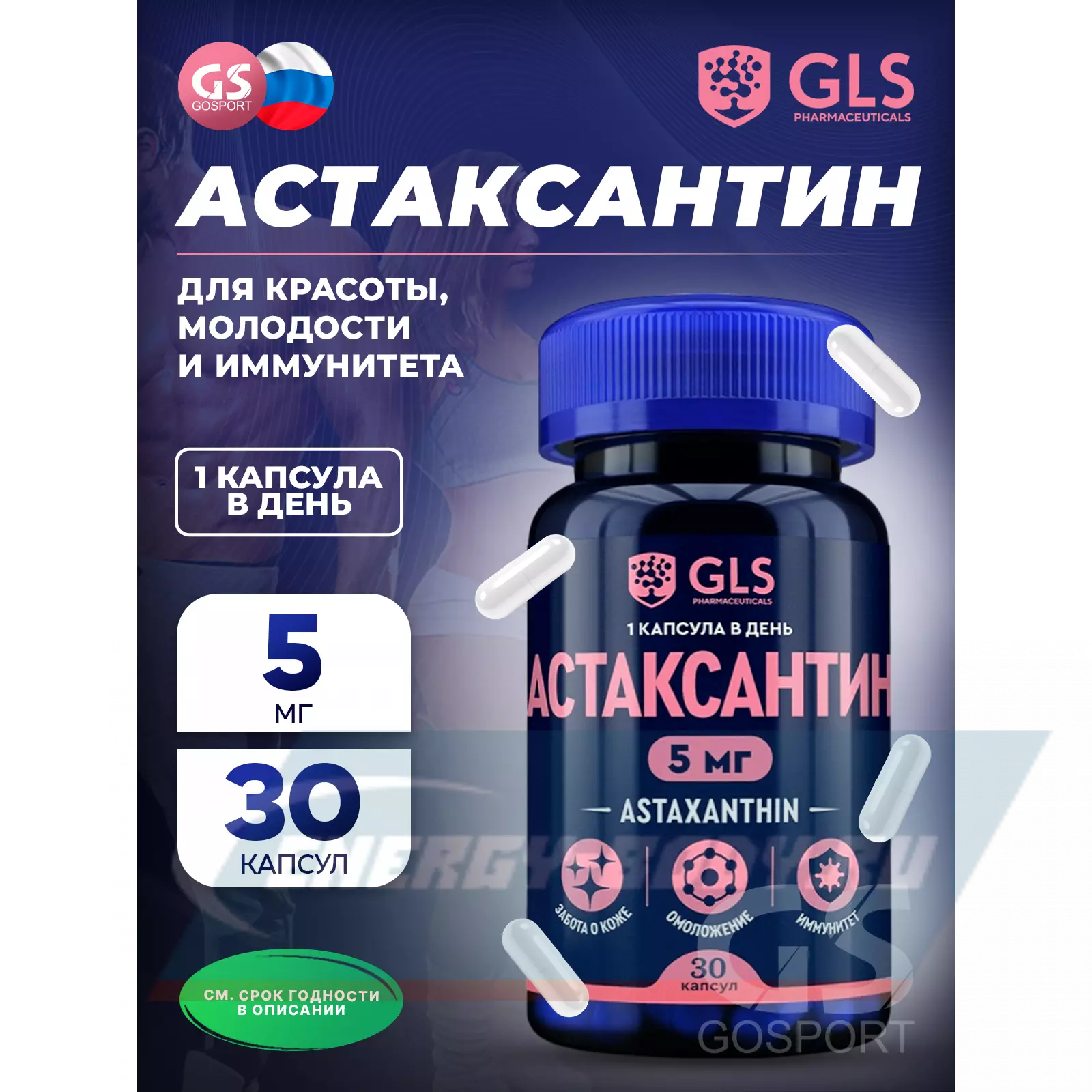 GLS pharmaceuticals Астаксантин (Astaxanthin) 5 мг 30 капсул — Для молодости, иммунитета и нервной системы