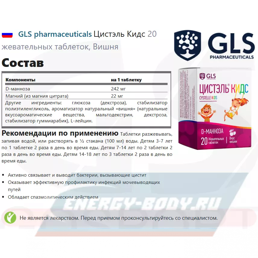 GLS pharmaceuticals Цистэль Кидс 20 жевательных таблеток, Вишня — Для мочевыводящих путей