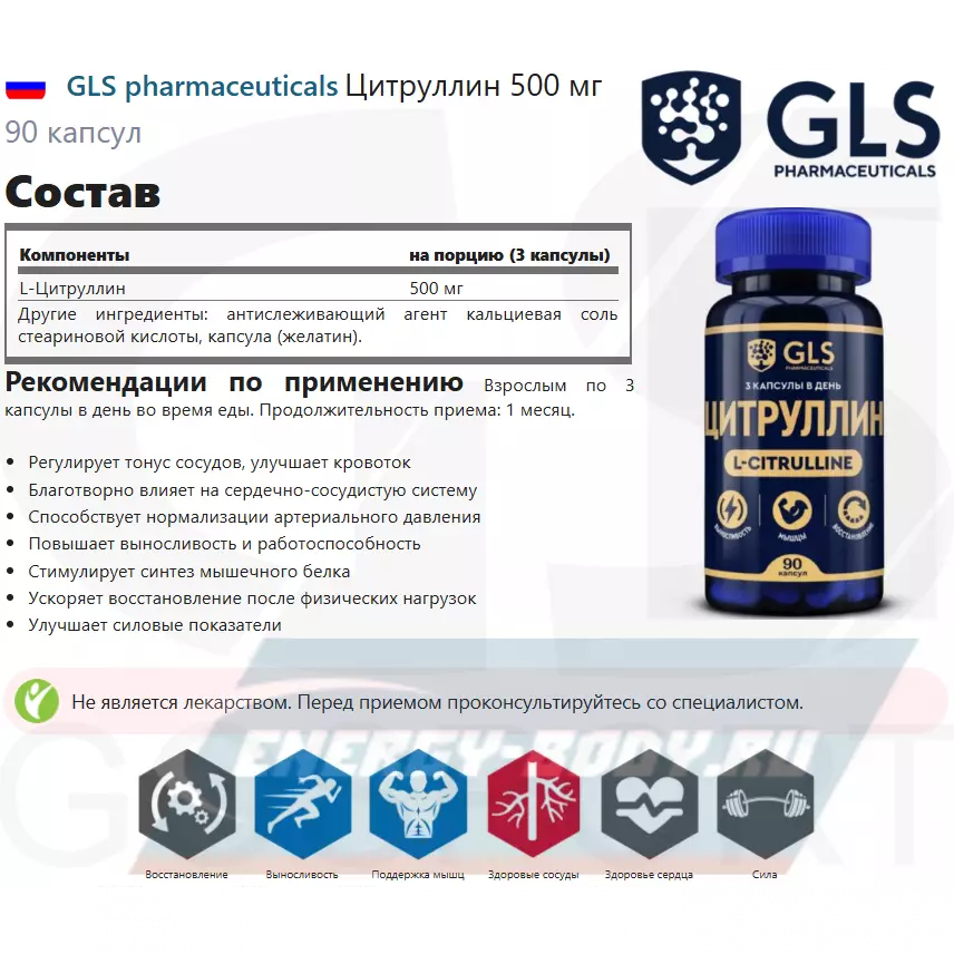 Состав GLS pharmaceuticals Цитруллин 500 мг