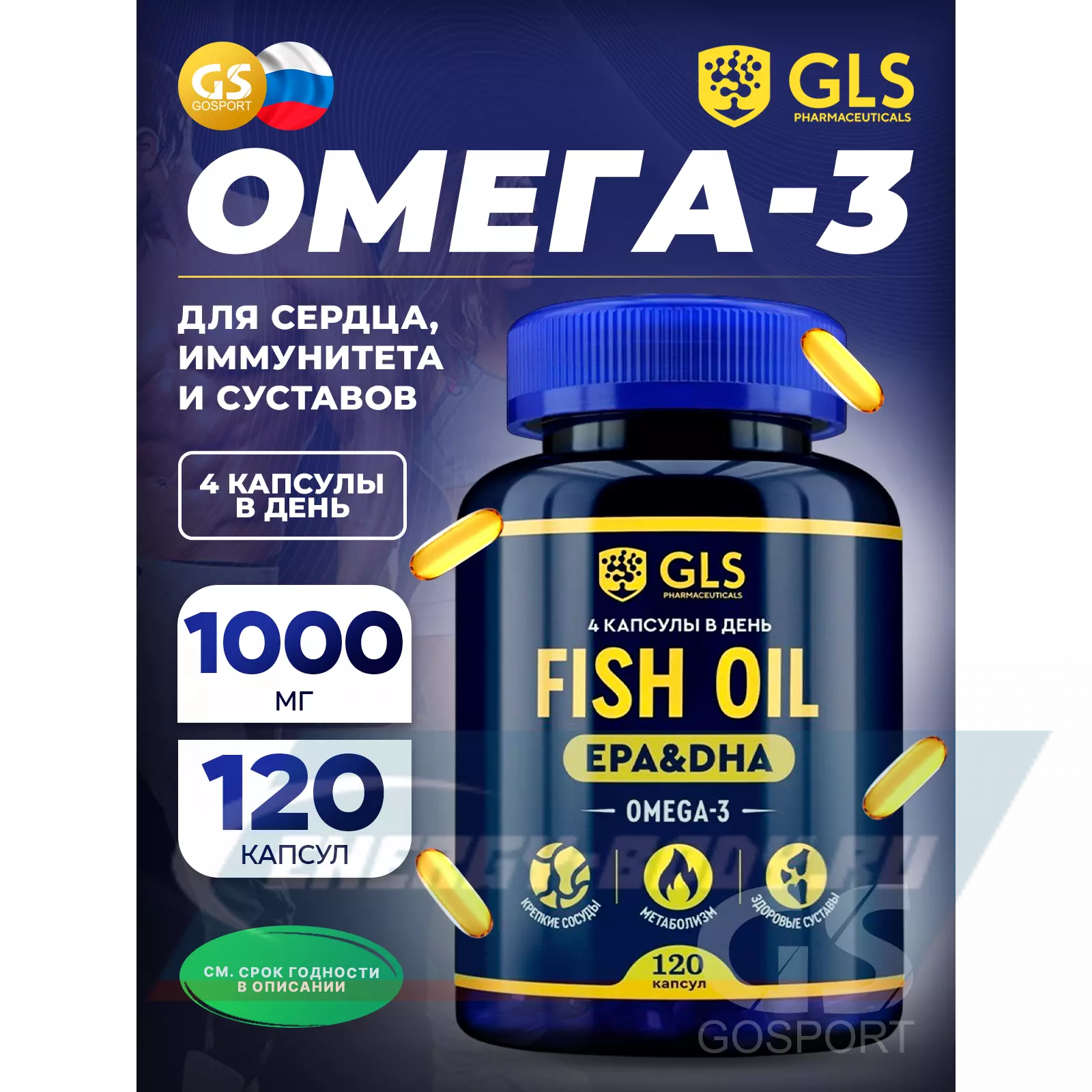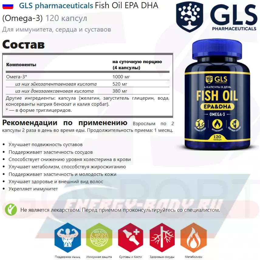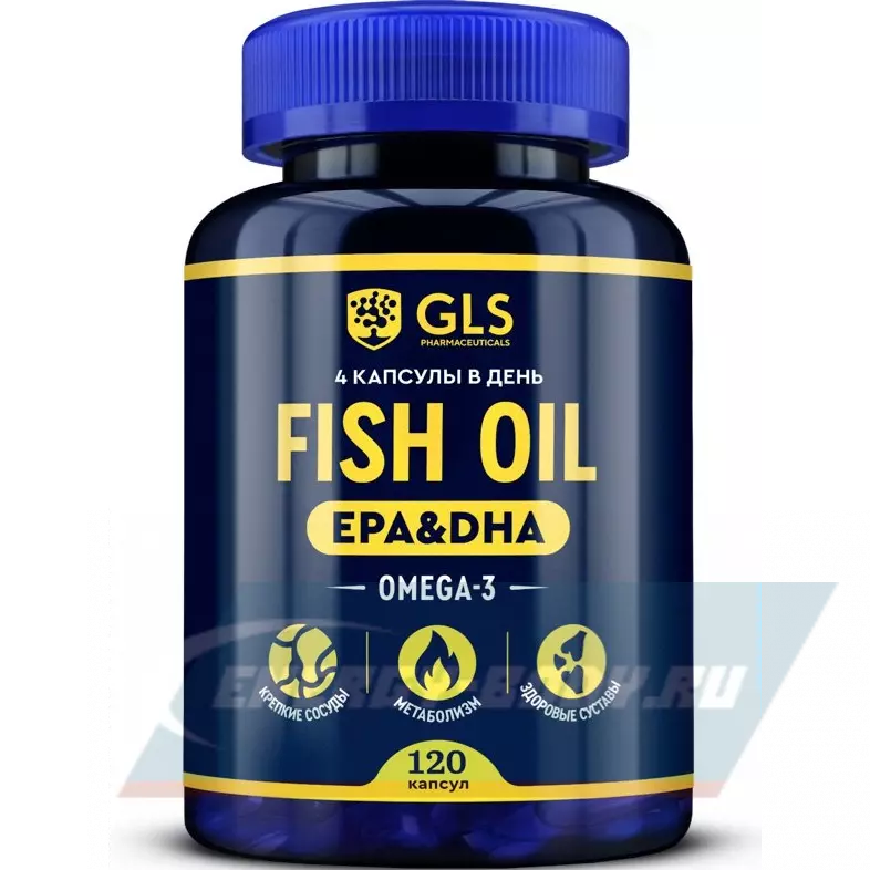 GLS pharmaceuticals Fish Oil EPA DHA (Omega-3) 120 капсул — Для суставов, сосудов и метаболизма